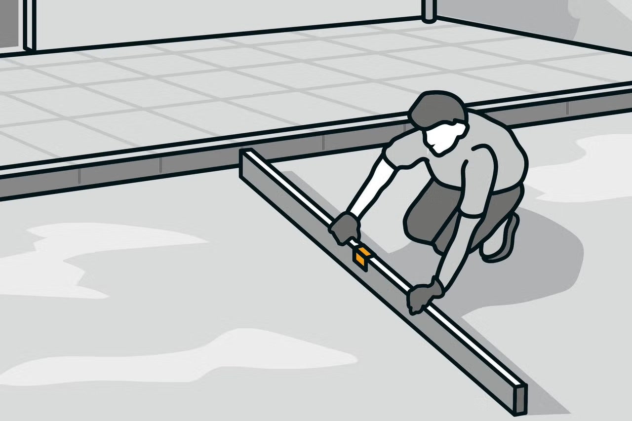 Všechny nerovnosti teď musí pryč. Plocha se musí vyrovnat a připravit na další vrstvy.