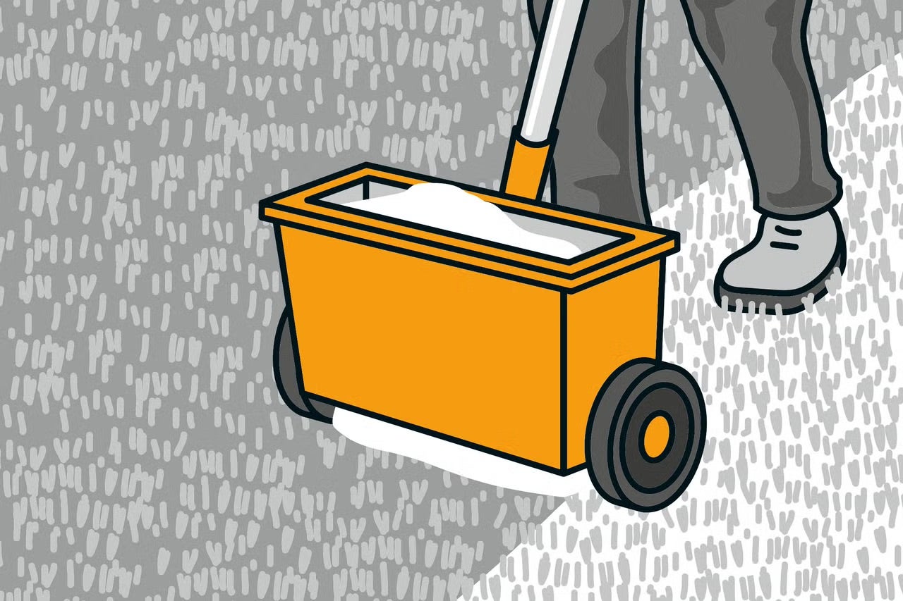 Nyní na položený umělý trávník rovnoměrně rozprostřete křemičitý písek v množství 5 kg na metr čtvereční. Pokud je plocha větší, použijte pro usnadnění práce rozmetadlo.