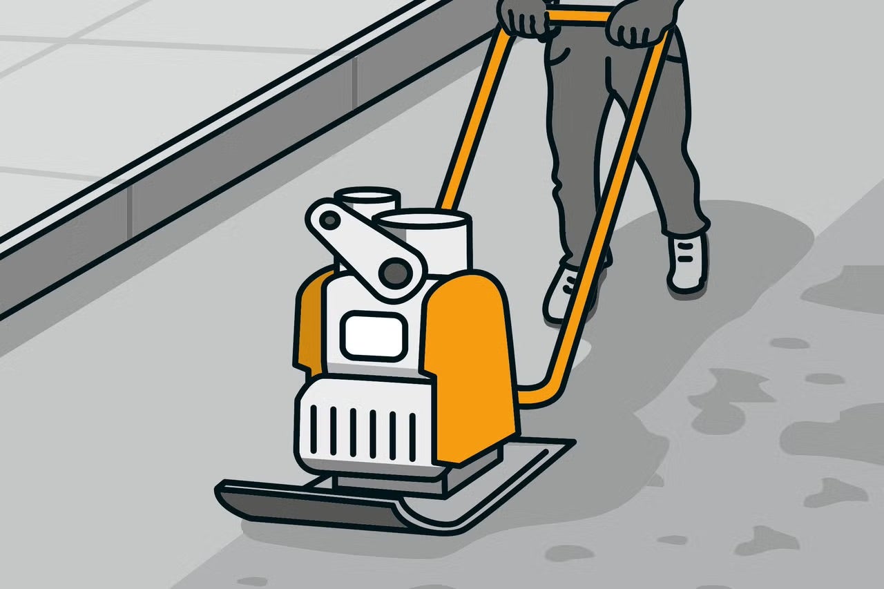 Půdu rovnoměrně zhutněte vibrační deskou, aby se umělý trávník později neprohýbal.