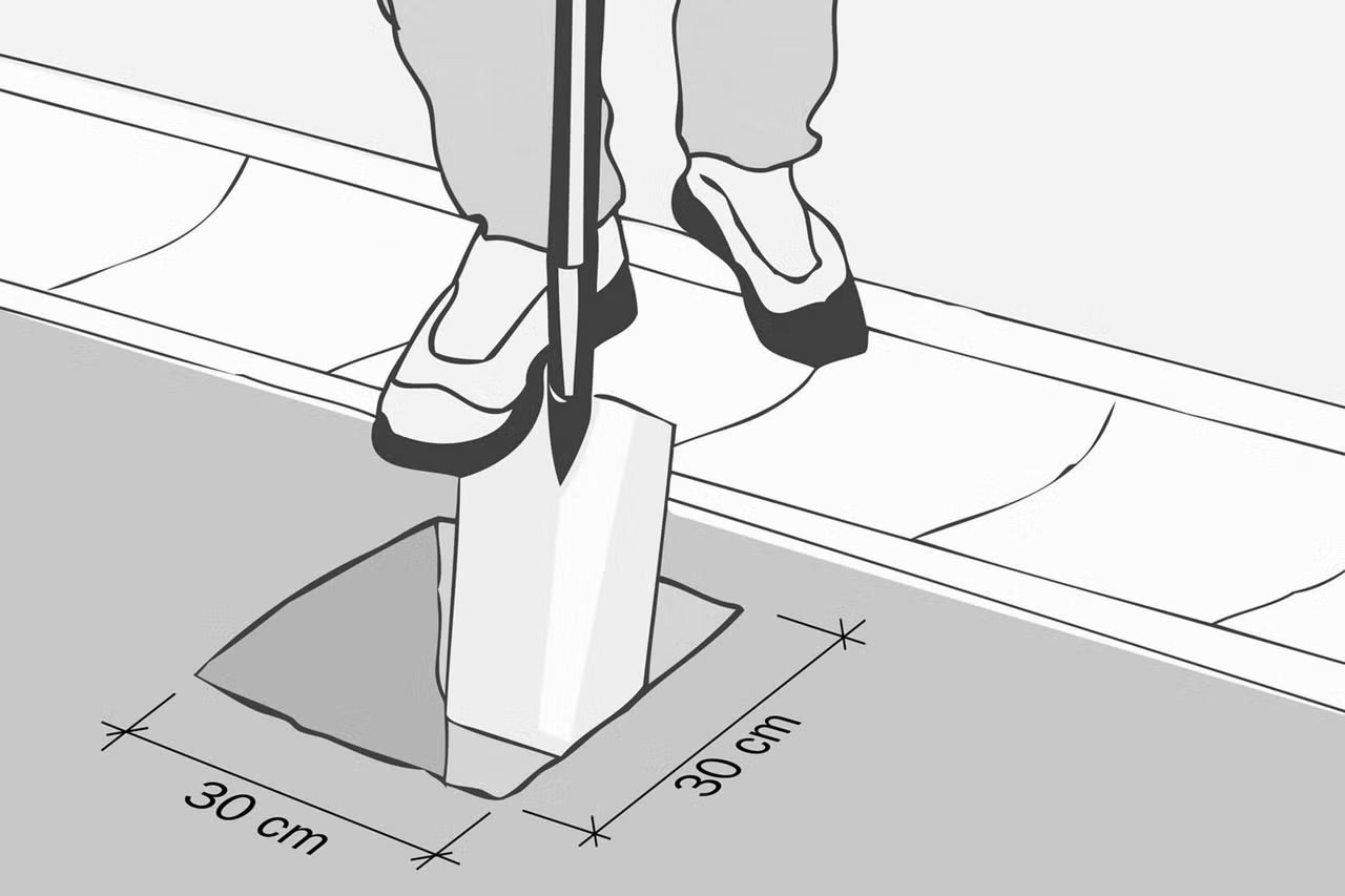 Pomocí rýče vykopejte jámu o rozměrech přibližně 30 cm x 30 cm a hloubce přibližně 35 cm.