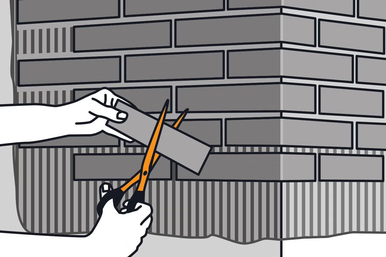 Cihlové pásky snadno upravíte na míru pomocí nůžek, nůžek na plastové a pryžové profily nebo pákovou řezačkou .