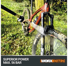 WORX WG633 E.9 je výkonný a kompaktní 20V akumulátorový vysokotlaký čistič ideální pro každodenní čištění i odstraňování odolných nečistot. Vylepšený motor a vývěva produkují tlak až 56 barů a průtok vody 220 l/h, což představuje o 120 % vyšší výkon než předchozí generace.