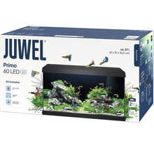 Akvarijní set JUWEL Primo 60, který zahrnuje kryt s LED osvětlením, topítko a filtr, bez skříňky, černý, rozměry 61 x 31 x 36,5 cm, objem 57 l
