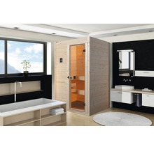 Bio sauna z masivního dřeva Weka Valida GT vel.1 vč. 4,5kW bio kamen a digitálního ovládání bez oken s celoskleněnými dveřmi z čirého skla