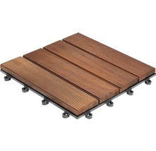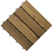Dřevěné dlaždice z tepelně opracovaného pravého dřeva s certifikací FSC a praktickým klick systémem umožňujícím jednoduchou montáž a demontáž. Dřevěné dlaždice lze použít pro jakékoliv místo a roční období. Zadní mřížka z HDPE plastu zaručuje odolnost proti UV záření a delší životnost. Povrch dlaždic je protiskluzový, stabilní při nášlapu a vysoce zatížitelný.