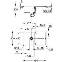 Granitový dřez GROHE K400 500 x 780 mm černá 31639AP0