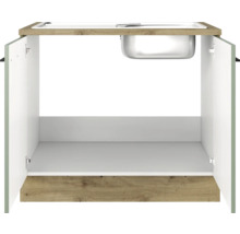 Kuchyňská skříňka s dřezem a pracovní deskou Flex Well Cara ŠxHxV 100 x 60 x 85 cm barva čela zelená matná barva korpusu dub světlý