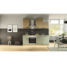 Kuchyňský blok se spotřebiči Flex Well Cara 220 cm barva čela zelená dub matná barva korpusu dub