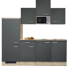 Kuchyňský blok se spotřebiči Flex Well Tiago 210 cm barva čela čedičová šedá matná barva korpusu san remo dub světlá