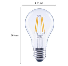 Tato čirá LED žárovka A60 hruškovitého tvaru značky FLAIR má vláknové provedení. Vydává teple bílé světlo o teplotě barvy 2 700 K a světelném toku 1 055 lm.