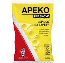 Práškové lepidlo na tapety Apeko je vhodné až na 50 m². Vodný roztok prášku se používá k lepení papírových tapet, případně pro zahušťování vodouředitelných barev a lepidel.