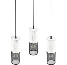 Závěsné svítidlo TOSH E27 3x40W H150CM Ø28CM METAL je ideálním řešením pro moderní interiéry, které hledají stylové a funkční osvětlení. S elegantní kombinací černého kovu a dřevěných prvků v antické bílé barvě, toto svítidlo přináší nadčasový design, který se hodí do různých stylů zařízení, od minimalistického po moderní.