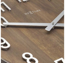 Velké dřevěné nástěnné hodiny Precious (50 cm) značky NeXtime mají stylový atraktivní vzhled. Indexové číslice mají kartáčovaný stříbrný kovový povrch a jsou umístěny na ciferníku z přírodního dřeva Tím vzniká nádherný moderní trojrozměrný efekt a hravý stín na ciferníku z vlašského ořechu. Tato pastva pro oči má tichou mechaniku a je poháněna 1 AA baterií (není součástí balení).