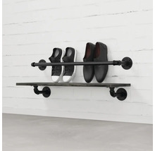 Sestavte si praktický botník v industriálně-rustikálním designu. Zahrnuje dvě samostatné konstrukce z trubkového systému Rusticline. Sestavu lze doplnit i jednoduchou policí s věšákem, se kterou vytvoříte kompletní šatní sestavu, hodící se do vstupní haly nebo šatny