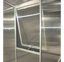Zajišťuje útulnou atmosféru a přídavné větrání, které „funguje“ i při špatném počasí: Velké boční okno lze nastavit do 5 různých úhlů – a nepropustí do vaší kvalitně provětrávané zelené oázy déšť ani sníh, protože se otevírá vespod.