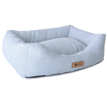 Luxusní pelíšek s vyndavacím vnitřním polštářem je z odolné a pevné tkaniny ve světle modré barvě.