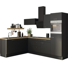 Rohová kuchyňská linka Optifit se spotřebiči Ingvar420 270 cm barva čela antracit matná barva korpusu antracit v nesmontovaném stavu