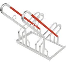 Parkovací stojan na kola s parkovacím místem pro 2 jízdní kola se díky kombinaci parkovacího místa s opřením a třmenem dokonale hodí pro elektrokola.