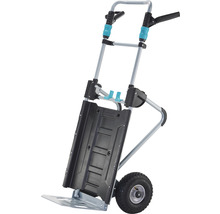 Tento otočný kloub můžete použít k rychlé přeměně TS 2500 na kolečkový vozík. Široká ložná plocha Vám nabízí dostatek prostoru pro bezpečnou přepravu například euroboxů do 400 x 600 mm. Nízká ložná plocha usnadňuje nakládání a vykládání a 2-kolová statika zajišťuje rovnováhu a stabilitu při nakládání a jízdě. Sklopná lopata vám nabízí další flexibilitu: ve složeném stavu vám umožní přepravovat dlouhé předměty, v rozloženém stavu slouží jako zarážka pro stabilizaci nákladu.